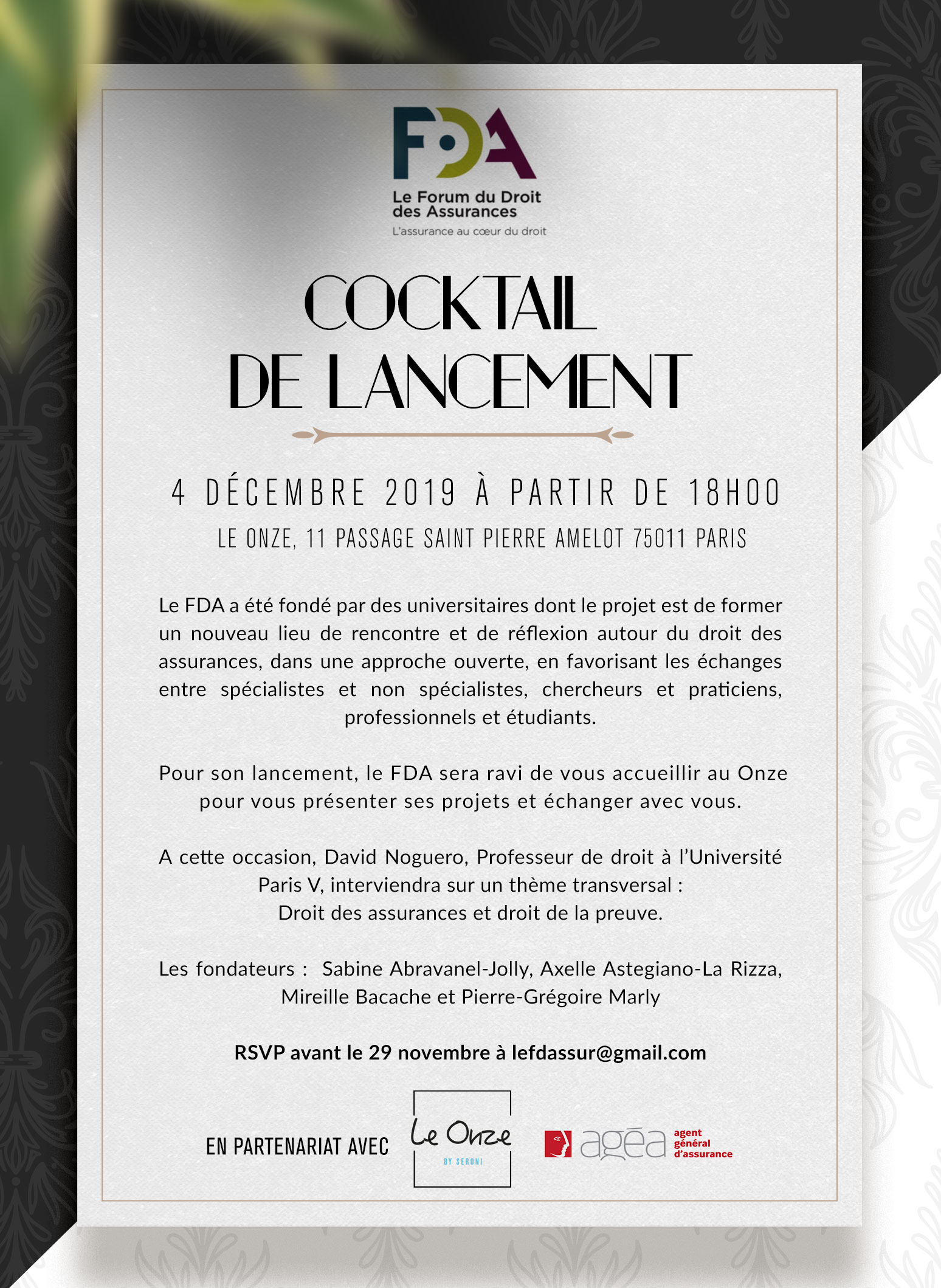 Le 4 décembre 2019 : Lancement du Forum du droit des assurances Par Pierre-Grégoire MarlyDans Agenda1 décembre 20191 mn de lecture L Un grand moment en perspective !