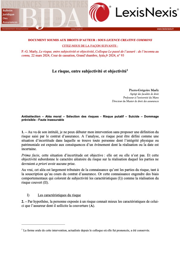 ⚖ Je suis très heureux de vous annoncer la parution du dernier Bulletin Juridique des Assurances (n° 93) dans lequel se trouvent les actes du beau colloque qui s’est tenu à la Cour de cassation le 22 mars dernier sur le thème : « Le passé de l’assuré : de l’inconnu au connu ».