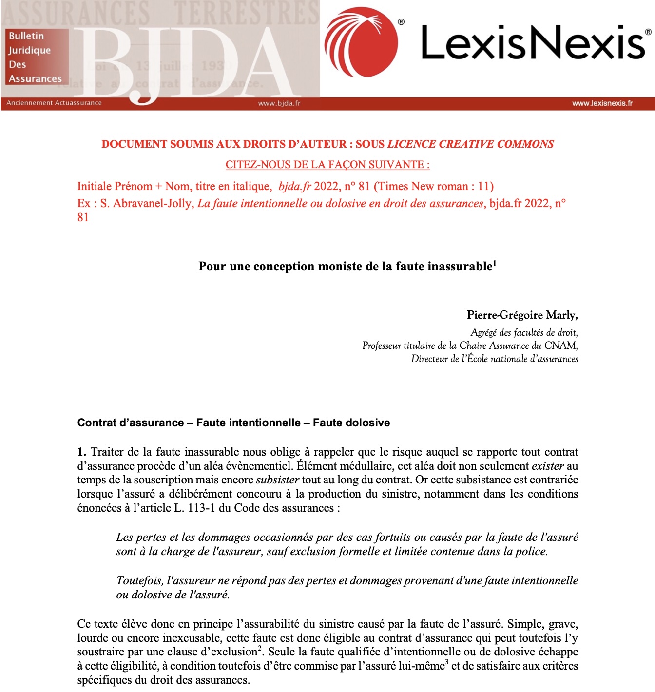 📕 Dans le cadre des actes du colloque organisé pour le 100e numéro du Bulletin Juridique des Assurances , je vous propose un modeste plaidoyer en faveur d’une simplification notionnelle de la faute inassurable.